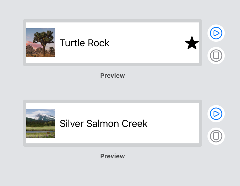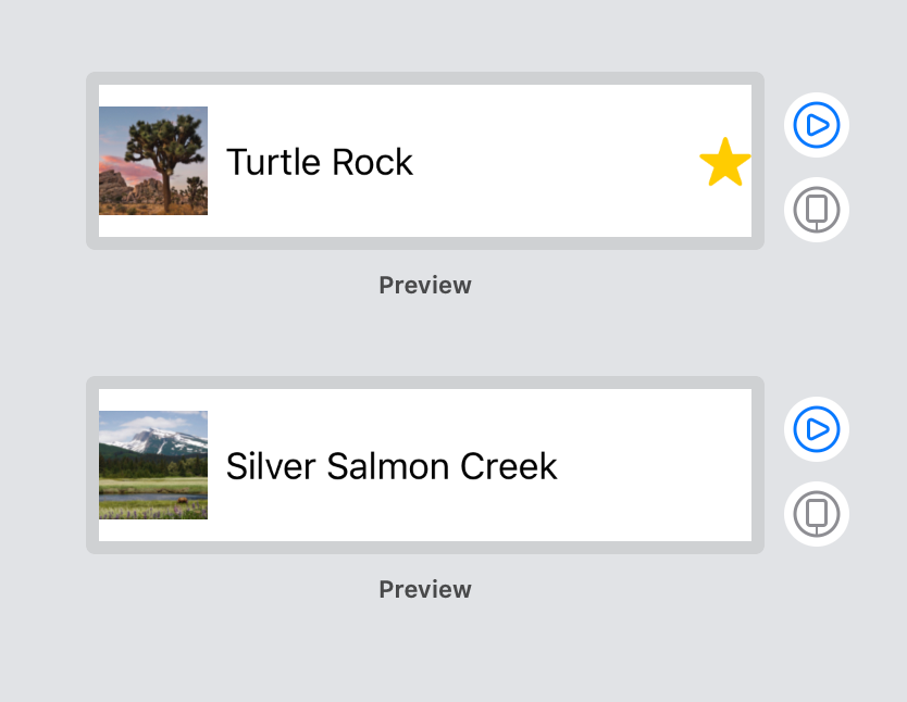 별은 랜드마크가 isFavorite 프로퍼티가 true인지를 나타냅니다. 이 튜토리얼 뒷부분에서 해당 프로퍼티를 수정하는 방법을 보게 될 것입니다.
