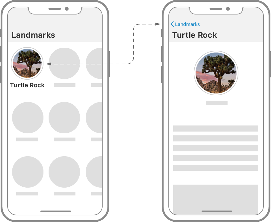 Landmarks 앱의 홈 페이지는 사용자가 상세보기를 위해 탭을 하기 전에 랜드마크에 대해 간단한 보여주는 것이 필요합니다.
