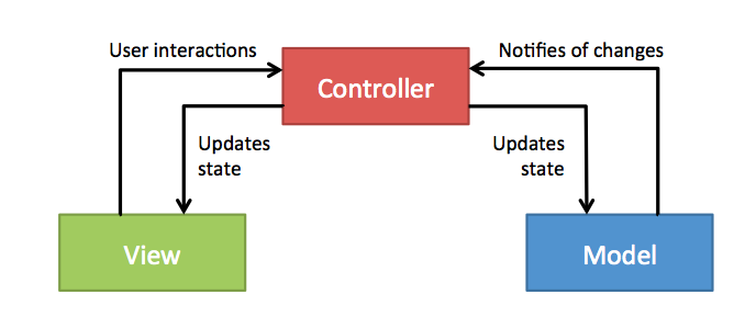 MVC는 첫번째 UI 디자인 패턴이고, 그 기원은 1970년대 Smalltalk 언어로 거슬러 올라갑니다. 아래 이미지는 MVC 패턴의 주요 구성요소를 보여줍니다.
