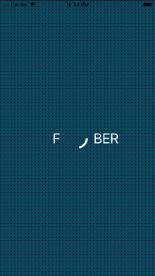 스플래쉬 화면은 자체 모듈에 있습니다: SplashScreen.swift. 애니메이션에 ‘U'가 추가되기를 기다리는 F ber 라벨과 함께 Fuber-blue 배경이 있는 것을 알 수 있습니다.