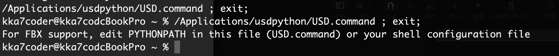 USD.command 파일을 실행하면 터미널 창에서 다음과 같은 메시지를 보게 됩니다.