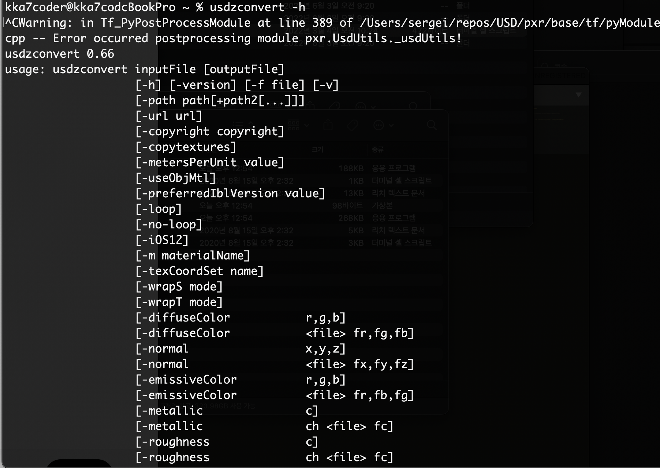 WWDC 2019에서 Apple은 USDZ 파일을 생성하기 위한 명령어 툴을 제공합니다(터미널에서 수행)