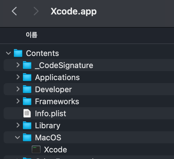 또 다른 방법으로는 기존 Xcode.app 패키지 내용 보기 > Contents/MacOS/Xcode를 직접 실행하면, 터미널 실행과 함께 기존 버젼의 Xcode를 실행할수 있습니다.