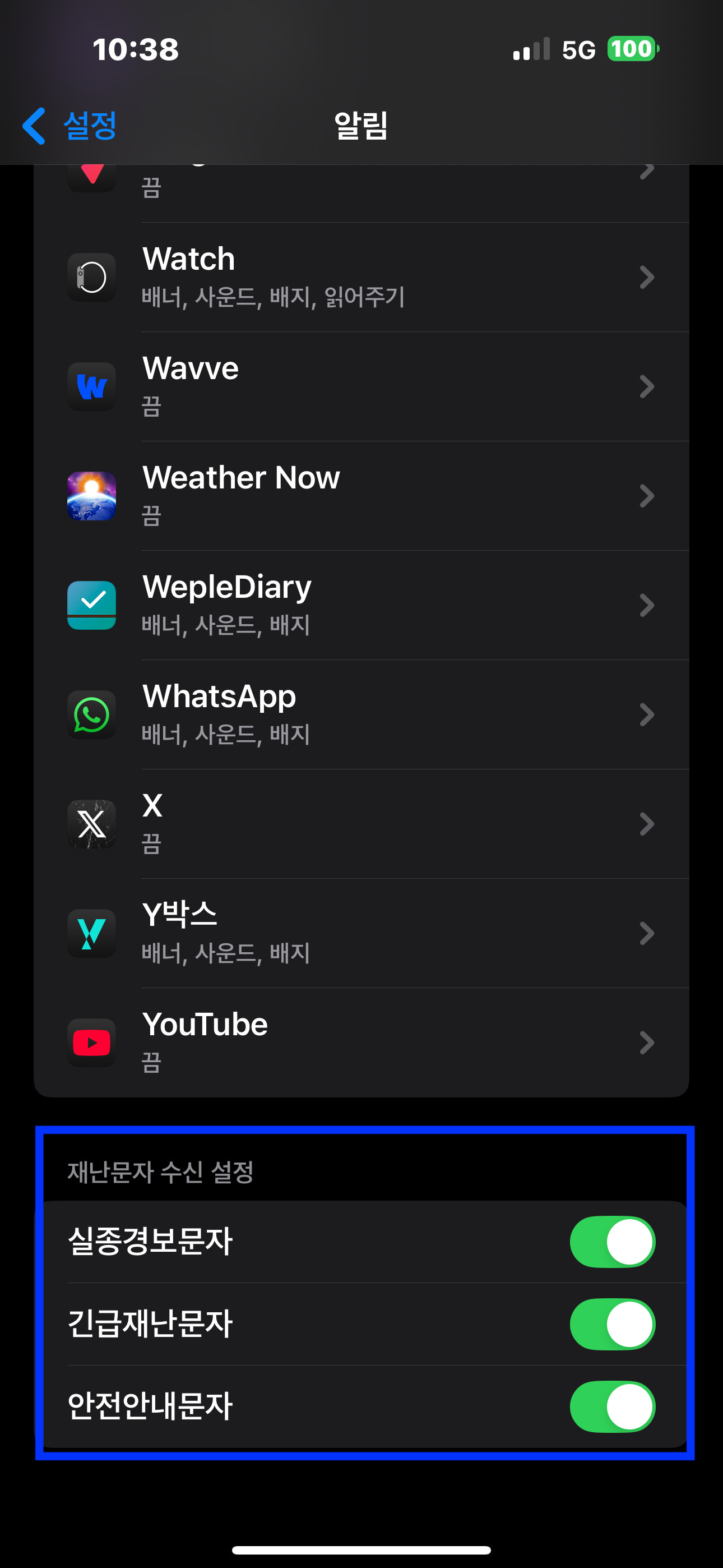 아이폰에서 재난 문자 오는 것을 끄고 켜는 방법은