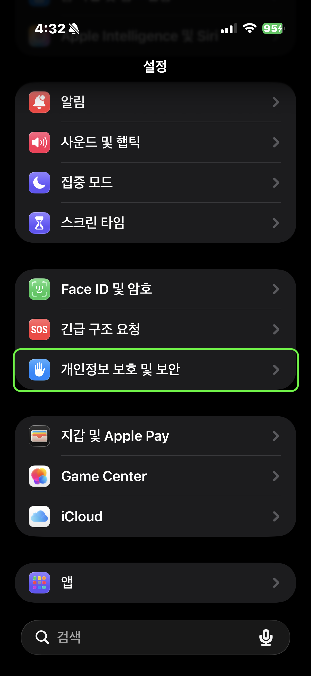- 스크린 타임(콘텐츠 및 개인정보 보호 제한) 또는 프로파일 제한으로 일부 설정이 막힐 수 있습니다.